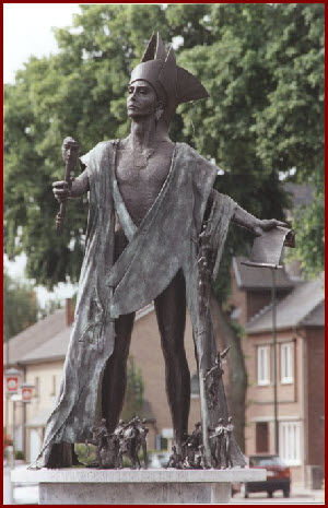 "De Vlooienkoning", een bronzen beeld van de kunstenaar Jan Praet en Bert Kemner-